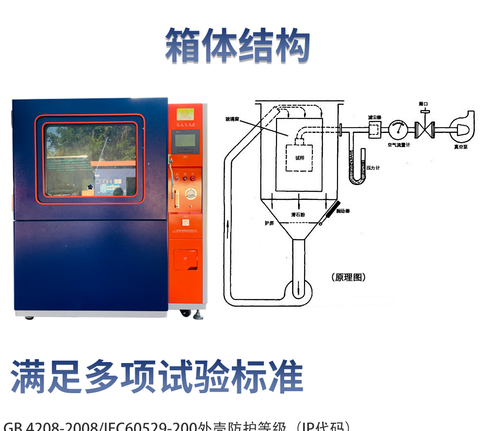 用途:防塵試驗箱適用于防護等級 (IP code), GB/T 4942.2-93(低壓設(shè)備防護等級),GB 7000.1(燈具防護等級),DIN40050和IP5K0等校準(zhǔn)設(shè)計制造。SC-015應(yīng)用于LED燈具和其它照明產(chǎn)品對IP5X和IP6X防塵等級測試。