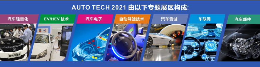 (AUTO TECH 2021)“第八屆國際汽車技術展覽會” 由汽車技術相關的展覽及高峰技術論壇組成。組委會設立汽車電子技術展、汽車輕量化技術及汽車材料展、車聯網技術展、新能源汽車技術展、汽車測試測量展、以及自動駕駛技術展等專題展覽會。