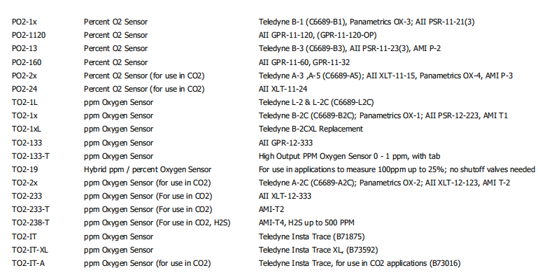 3T: (TO2-133): 0 - 10ppm, 0 - 100ppm, 0 - 1000ppm, 0 - 10000 PPM 0 - 25%
