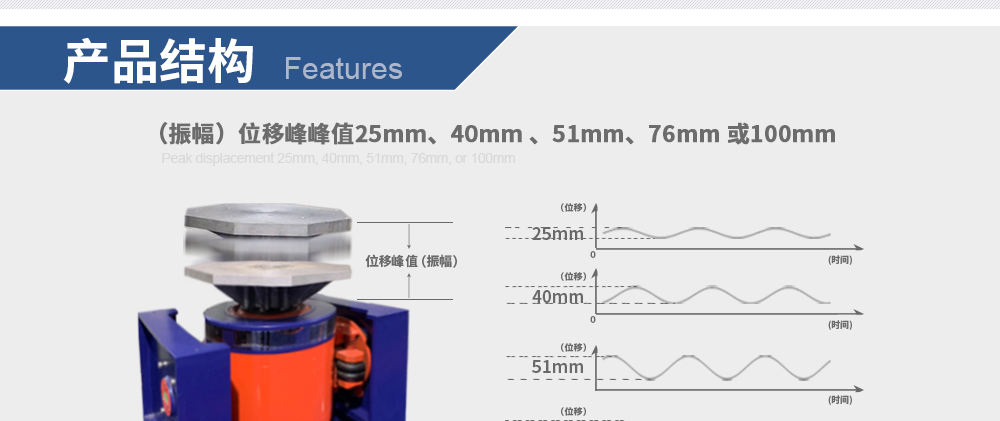 **** 位移可選76mm或100mm.uDisplacement peak-to-peak value of  76mm or 100mm.