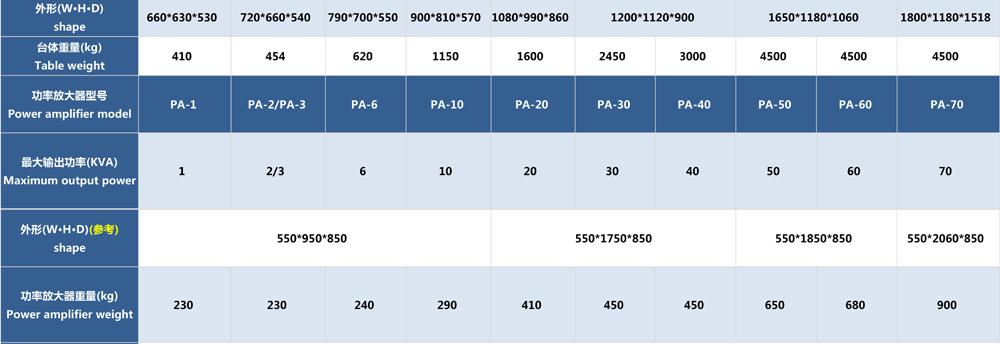• 三軸振動臺參數表